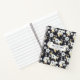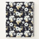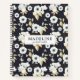 Trendy and retro, this notebook is perfect for home, office, or school. The design features a navy blue background with gold scratches, light blue and white flowers with light green leaves over a navy blue background. Great gift for the home, office, or school.