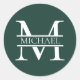 Personalised Elegant Emerald Green Monogram & Name Classic Round Sticker