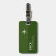 An elegant and personalised design with image of a white aeroplane on a 2-tone green (editable colour) background, to identify your belongings
