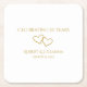 Create stylish wedding anniversary coaster by adding the couples names and wedding or anniversary date to these white paper coasters. Simple, elegant script saying "Celebrating 50 Years" written in a tan golden colour can be edited to any number. Two simple hand drawn golden tan toned intertwined hearts accent the centre or they can be deleted if desired. The couples names and date below in golden tan modern script is editable. This would look great on the guest's party table with the matching stemless wine glasses. Simple minimalistic yet romantic for a lovely anniversary, wedding, or birthday party.