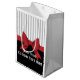 This product design features an illustrated red ribbon on a black background and grey stripes. With its unique classic graphics, It makes elegant chic medium gift bag with personalised text and a favourite stripe colour for birthdays, wedding, Christmas parties, or any other special events.