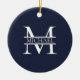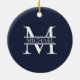 Personalised Elegant Navy Blue Monogram and Name Ceramic Ornament