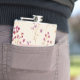 The flask itself is fine. It’s a cheap flask, obviously bought in bulk, however am prepared to overlook that. Given that it is a personalized item, I would have liked to have seen gift boxing instead of the generic packaging. Terrible printing, and/or quality. It’s a cheap, tacky vinyl. It is not cut straight and is also applied in a way that it is overhanging the bottom, causing the glue to catch on items and it will eventually roll and tear, damaging the wrap.