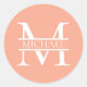 Personalised Elegant Peach Monogram and Name Classic Round Sticker