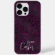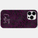 Elegant magenta or dark pink black leopard iPhone case with customisable typography in trendy script font and personalised with your name.
