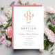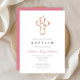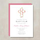 Personalised Elegant Pink Floral Cross Baptism Invitation