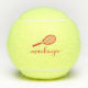 Personalised tennis balls printed with custom name or text in a feminine girly and modern pretty script font and simple tennis racquet monogram in red. Any women's tennis player would appreciate the elegant look on these modern monogrammed practice balls.