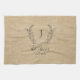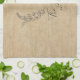 Custom laurel monogrammed family name and established year elegant chic rustic country farmhouse style ochre beige burlap template kitchen towel. +++++++ A modern keepsake gift or kitchen decor for weddings, anniversaries, housewarmings, Thanksgiving, Christmas, or any other occasion.