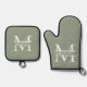 Personalised Elegant Sage Green Monogram & Name Oven Mitt & Pot Holder Set