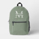 Personalised Elegant Sage Green Monogram & Name Printed Backpack