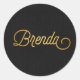 Personalised Elegant Script Brenda Gold Black Classic Round Sticker