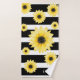 Personalised Elegant Sunfllower on Black and White Bath Towel Set