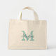 Personalised elegant teal monogram small tiny Mini Tote Bag. Classy template design with script typography and vintage initial letter. Custom canvas totes.