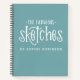 A beautiful teal and white personalised 8.5 x 11 sketchbook. The words, "The Fabulous sketches of" in a hand drawn font personalised with your name below. Customise the sketchbook with the name of your choice to make someone feel extra special. Makes a fun gift for birthdays or for Christmas. Comes in a variety of colours. Designed for you by Blackberry Boulevard.