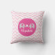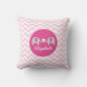 This pillow features a pastel pink chevron pattern with a hot pink circle and grey elephants. The sweet, modern elephants share a heart with a place for you to personalise this pillow with a name. You can easily change the name, font style, and background colour to make the perfect pillow for a sweet baby.