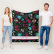 Personalised Embroidery Style Floral Blue Black Fleece Blanket