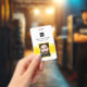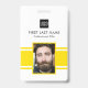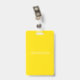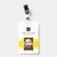 Personalised business office ID badge featuring a yellow and white background, a photo of the employee, your company logo, name and profession.