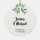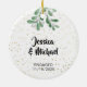 Celebrate your engagement this Christmas with this elegant Christmas Tree Ornament. It is decorated with watercolor mistletoe and tiny gold stars.