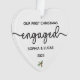 Personalise your Christmas tree with this lovely engagement Christmas keepsake, heart-shaped ornament. A sweet Christmas design with the saying Our First Christmas Engaged, and a decorative sprig of holly. Personalise with the couple's first names and year.