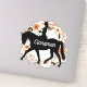 This PERSONALISED HORSE STICKER make great custom gift for those who love horses! It features a black horse silhouette with a space for rider's name, barn name, horses name. Great for your Waterbottle, tack box, trailer, horse box, laptop...In my HORSE COLLECTION you can find different flower themed backgrounds too. Check out our other HORSE RIDING THEMED GIFTS by clicking on the Personalised horse gifts - In our shop where you can choose from a wide range of personalised horse gifts such a Personalised horse name vinyl stickers, Equestrian keychains, Tshirts, Tote bags, Drawstring bags...Ect. Just check all our collections and choose your custom horse gift.