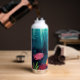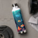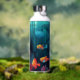 Peer into the depths of sea life in this detailed exotic fish aquarium. Several colourful fish are in the foreground, and in the background is a detailed undersea paradise with seaweed, rock and coral. A great water bottle for anyone who has a passion for fish, or life under the sea.
