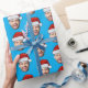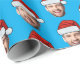 Personalised Face Santa Hat Blue Gift Wrap, Replace the face with your favorite photo if you want (make sure to crop as much to the face as possible and use an app to remove the background) and personalize this funny Christmas Holiday Wrapping Paper with your kid, husband, or boyfriend on it! Also a fun and unique surprise for grandma and grandpa, mom or dad.
