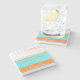 The coasters are gorgeous, a quality feel and heavy weight. They look like a precious archeological find. A rustic stone juxtaposed with a modern floral black and white print. I like the way the print goes slightly imperfect on the cut stone edges giving them a kind-of natural beauty.