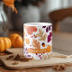 Enjoy your favourite drink in cosy autumn style with this personalised fall design featuring a modern leaf and acorn pattern in rich seasonal tones of orange, plum, and gold. A customisable name box adds a personal touch, making it the perfect gift for family, friends, or yourself. Great for coffee, tea, hot cocoa, or pumpkin spice lattes, this festive design is ideal for fall, Thanksgiving, or holiday gifting.