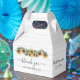 Provide your wedding guests with personalised wedding favours. These small wedding favour boxes contain rustic sunflower wedding decorations to match your sunflower wedding reception. Place on each guest table around a sunflower wedding centerpiece. A country wedding theme with a white barn wood background. Unique wedding favours include candies, candles, flower seeds, Jordan almonds, and even trail mix. Sunflower wedding favour boxes make elegant fall wedding ideas for an autumn wedding.