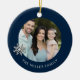Celebrate the joy and togetherness of the holiday season with our Personalised Family Christmas Ornament. The front showcases a cherished family photo framed by an elegant snowflake design, while the family name adds a personal touch. On the back, "Joy + Love" captures the heartwarming spirit of your family, along with the memorable date. This customisable ornament is a perfect holiday gift, creating lasting memories for your loved ones. Crafted with attention to detail, it's a beautiful addition to your tree and a keepsake to be treasured for years to come. Share the warmth of the season with a unique and heartfelt ornament that celebrates your family's holiday joy.