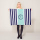 Personalised Family Crest Stripe Pattern Navy Mint Fleece Blanket