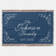 Personalised family last name burgundy red throw blanket. Swirl and flourish design with custom sur name. Personalised home decor for sofa, couch or bed in bedroom. Stylish script calligraphy typography for custom surname. Classy ornate border with beautiful swirly flourished decorations. Chic vintage template design with personalizable last name. Cute gift idea for wedding, birthday, bridal shower, reunion, engagement, anniversary, new home housewarming party, new baby etc. Create your own unique pretty homedecor for just married couple, bride and groom, newly weds, grandparents, husband and wife, honeymooners, new parents, newlyweds etc. Customisable background colour. Custom established year. Est. since 20xx.