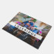 Custom doormat personalised with your photo and family surname. Your custom name is written in an uppercase black font with a white background, and the word "family" is written in an elegant hand lettered font script with curly swashes. Click "Personalise" to add your family name monogram and a large photo of your family. Click "Click to customise further" to change the font and text colour. A custom doormat makes a great gift for family and friends!
