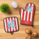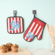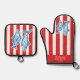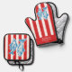 Personalised Family Nautical Red Sardine Stripes Oven Mitt & Pot Holder Set