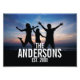 Personalised family photo gift, decorate with family name and established year in white modern sans serif font style, perfect with horizontal (landscape) photo.
