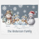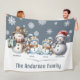 Holiday Blanket . Snowman Family of 4 Personalised Fleece Christmas Blanket with mum, dad and 2 children snowmen. Family of four personalised snowman keepsake Christmas blanket.