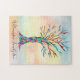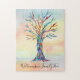 This modern jigsaw puzzle is decorated with a colourful Family Tree design on watercolor background.