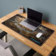 Bring the exotic beauty of this fantasy map into your workspace with this exquisite desk mat. Personalise it with a name printed on the lower right corner. This mat features a view of a serene workbench of a busy creator with a high-quality print from a high definition graphic. It provides a smooth and comfortable surface for your work for your laptop, keyboard and mouse. It will also transform your workbench with a stylish and elegant touch. Perfectly suited for all creators, artists, writers and anyone inspired.