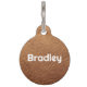 A faux brown leather pet tag with space for your pet's name and your phone number or other contact information.