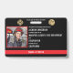 The customisable fire department ID badge features a firefighter emblem at the top that can be customised to your department as well as a place for the state logo as well. Customise with the firefighter's photo on the left. Beside the photo, the firefighter’s name, badge number, rank, and department are displayed. Add your own barcode to the back of the card, along with issue and expiration dates, and description of the firefighter, captain, chief, or office employee.