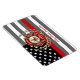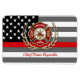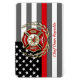 Fun firefighter's personalised fridge magnet. Maltese cross with your city name fire department, your rank and name over the classic thin red line firefighter's flag.