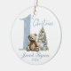 Personalised First Christmas bear for boy Ceramic Ornament. Artwork is beautifully done in watercolor elements of pastel blue