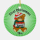 A sweet male teddy bear on a green starburst background with customisable name & date on front and back. Font and colour of text can also be changed.
