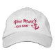A dynamic personalised First Mate cap in fuchsia pink style embroidered hat sure to make an impression on, or off the boat. Make this nautical star anchor design embroidery as unique as you are with your name, your location, or your boat's name.