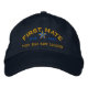 A personalised nautical star first mate embroidery design on a fine casual embroidered baseball cap. A one of a kind fashion statement sure to make an impression on, or off the boat.