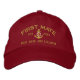 A personalised golden first mate embroidery lifesaver style. An original casual fashion embroidered baseball cap sure to make an impression on, or off the boat.