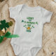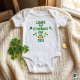 Celebrate your little lucky charm's big milestone with this adorable First St. Patrick's Day baby bodysuit! The festive design features bright green typography, scattered lucky shamrocks, and a cute pot of gold at the centre.