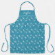 A blue cooking apron with a fishbone pattern . Personalise it with a name or text .