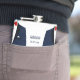 The flask itself is fine. It’s a cheap flask, obviously bought in bulk, however am prepared to overlook that. Given that it is a personalized item, I would have liked to have seen gift boxing instead of the generic packaging. Terrible printing, and/or quality. It’s a cheap, tacky vinyl. It is not cut straight and is also applied in a way that it is overhanging the bottom, causing the glue to catch on items and it will eventually roll and tear, damaging the wrap.