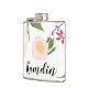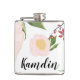 The flask itself is fine. It’s a cheap flask, obviously bought in bulk, however am prepared to overlook that. Given that it is a personalized item, I would have liked to have seen gift boxing instead of the generic packaging. Terrible printing, and/or quality. It’s a cheap, tacky vinyl. It is not cut straight and is also applied in a way that it is overhanging the bottom, causing the glue to catch on items and it will eventually roll and tear, damaging the wrap.
